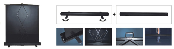★ 液压、剪式自动弹伸装置,方便向上提起和收合屏幕,能使幕布停留任意位置。
