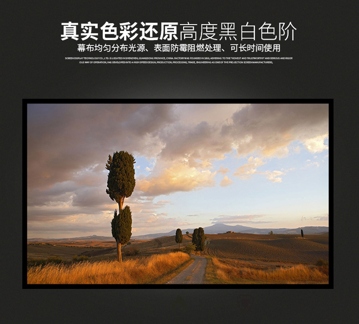 1.0CM哑光黑色铝合金边框,边框厚度30mm,安装使用弹簧结构,解决幕基本身热胀冷缩的物理特性,让屏幕平整度;